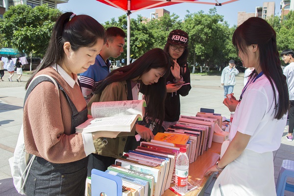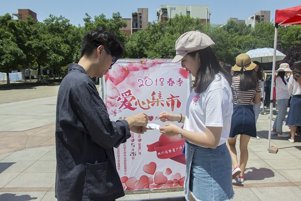 5月26日,由学生资助管理中心主办,新长城taptap点点体育自强社承办的以“携手助力希望,为爱益同前行”为主题的2018春季爱心集市活动在繁星广场成功举办。本次活动共计发放教辅类图书300余本,衣物100余件,图书漂流借阅100余本,同时也收到了同学们的爱心捐助物品。