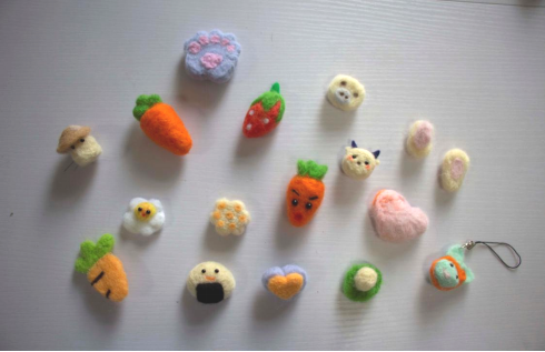 活动邀请专业的社团同学为学生们的手工制作进行指导。通过配置A、B胶制作出的形态各异、颜色多变、高透明度及水晶般的质感的滴胶成品展现出来;一条条红线经过翻绕、拉结,再配与多彩的珠子和流苏,一个个红红火火的中国结完美呈现;羊毛毡戳出来的小萌物,每一个都像精心雕琢出来般圆润,戳戳羊毛毡,戳至毡化融合,多彩多样的小玩偶都尽在掌握中。