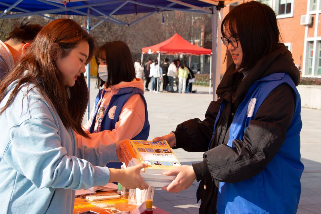 本次活动设有爱心捐赠区、爱心领取区、图书漂流区、游戏区、共四个专区。在爱心捐赠区,同学们可以捐赠自己闲置不用的物品,同时爱心领取区的物资是前期由广大师生积极捐赠图书、文体等闲置物品,经活动人员消毒、挑选后,所有物品可供有需要的人进行领取。在活动中传播公益环保理念,解决物品闲置问题,给予需要帮助的学生一定的精神关爱和物质资助。在图书漂流区,通过我们的讲解员讲解图书漂流的内容后,同学们借阅着自己喜欢的书目,也带来了自己的书进行交流分享。其中动态区域使得同学们在体验各类趣味活动的同时,提高疫情防控常识和增强自我防护意识。在“大画校园”活动中,同学们在画布上展开自己的想象,书写自己内心的话语,用彩笔描绘心中的爱和抗疫的信念;“战疫在路上”活动中,通过趣味问答的方式传播了疫情防控常识;“秋意随风起”活动中,通过“人工秋风”把乒乓球吹到空杯子中,无论是猛地依靠蛮力,还是小心地用巧劲,同学们可谓是各展其才;“乘秋风,行逸事”活动中,同学们拼起了运气,用掷骰子的方式抽取趣味动作。整个过程充满着欢声笑语,也在寒冷的季节温暖了每个人的心。