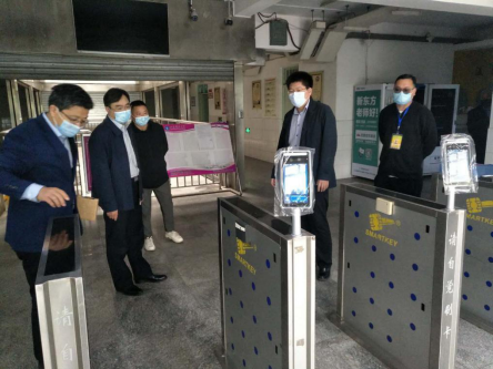 高建广先后查看了人脸识别测温系统、智能控电系统、热水淋浴等工程项目的施工现场,听取了项目的进展情况汇报。