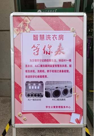 方案确定后,学生公寓管理服务中心与中标单位倒排工期、细化计划,加班加点。历时一个半月的时间,智慧洗衣房建设完成,正式投入使用,为学生开启了全新的公寓洗衣服务体验。新建成的智慧洗衣房配备了全新的LG、海尔等知名品牌的滚筒洗衣机、烘干机和洗鞋机,拓展洗衣房的机器使用功能,满足学生的多样化需求。洗衣房台面上整齐的放置着洗衣液、除菌液,学生可以扫码便捷使用,也可自带洗衣液。学生还可以通过手机下载APP,足不出户便可享受智能搜索空闲洗衣机、手机下单在线支付,手机定时提醒等服务,免去了等待排队的焦急和尴尬。洗衣房内还配备脸盆架、升降晾衣杆等便民服务设施,同时配备有消毒物资和专用卫生工具和日常维护台账等。智慧洗衣房内一流的设施、精细化的管理方式与标准化的服务内容,使得不少同学前来驻足观看、拍照打卡留念、亲身洗衣体验,同学们纷纷表示新学期学生公寓住宿的自豪感、幸福感满满。(通讯员:赵洋  刘玉玲)