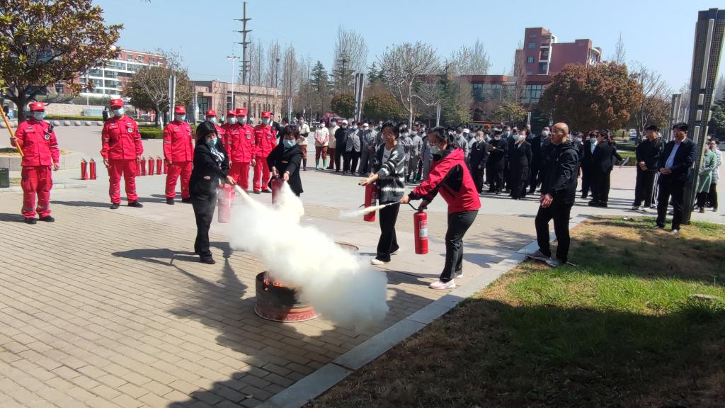“老师,喷头距离火源中心太远了”,“同学,手要拿稳,握紧喷头”……实操演练环节,参训人员在学校消防队员的指导下人人参与,掌握使用灭火器扑救初起火灾的技术方法。