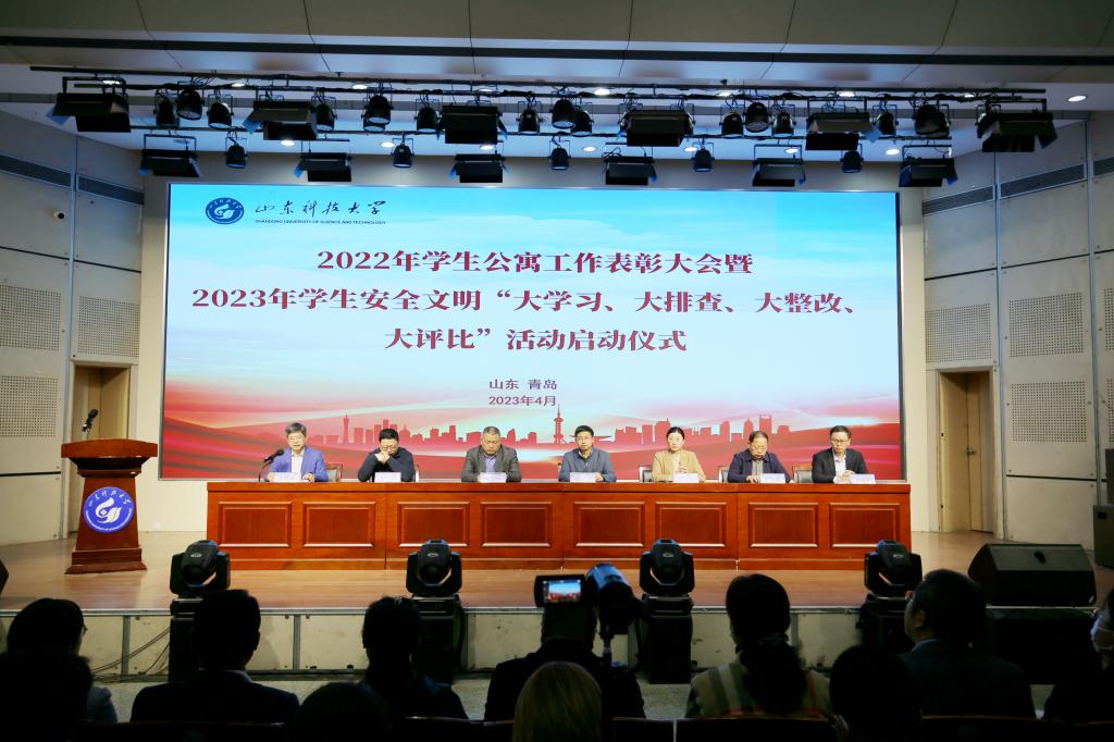 426日下午,学校举办2022年学生公寓工作表彰大会暨2023年学生安全文明“大学习、大排查、大整改、大评比”活动启动仪式。校党委常委、副校长阳凡林出席大会,学生工作部(处)、研究生工作部、安全管理处、后勤管理处、珠海市丹田物业管理股份有限公司青岛分公司负责人,各学院党委副书记、学生工作干部代表、获奖学生代表200余人参加大会。会议由学生工作部(处)副部(处)长朱景星主持。