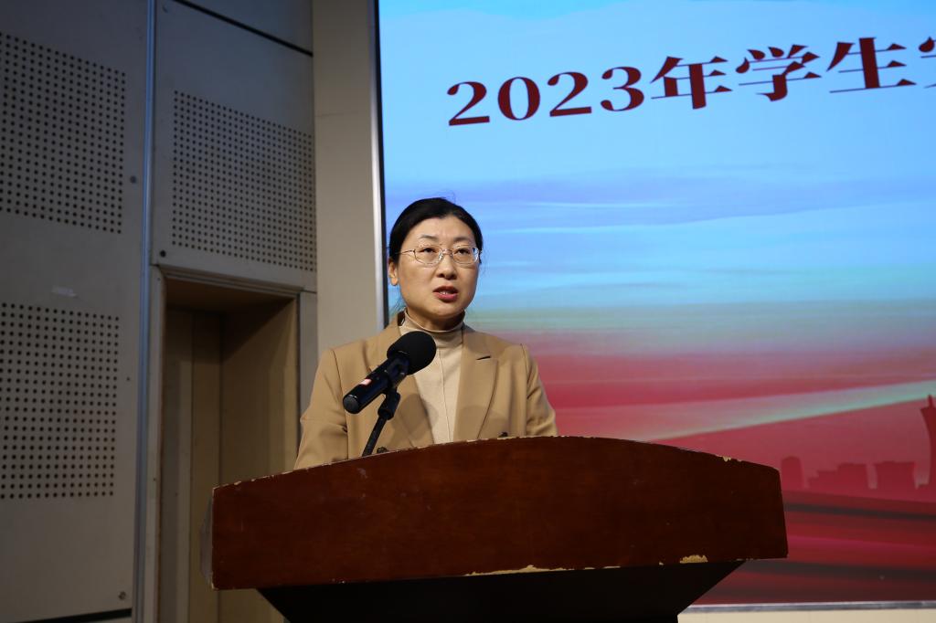 会上,安全管理处处长申玉三宣读了《2022年学生公寓工作先进集体、个人表彰决定》,学生工作部(处)部(处)长王震部署了2023年学生安全文明“大学习、大排查、大整改、大评比”活动方案。学生代表冯羿璋进行发言,向全体在校生发出了维护校园安全文明的倡议。
