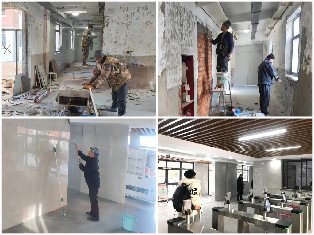 打造U+”空间,优化生活环境。抢抓寒假建设机遇期,于假期期间开展“U+”空间建设工作,对学生公寓ABC三区12个门厅进行改造建设,铲除旧墙皮并铺贴瓷砖、室内吊顶、更新照明灯具,将内侧门厅外移,拓展大厅空间,增设大厅休息沙发,增设外侧门厅门头装饰,提升学生公寓门厅时尚范儿!