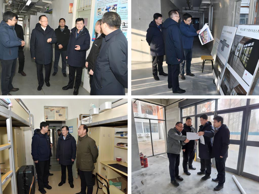 学校高度重视“一站式”学生社区建设,寒假期间,校党委书记罗公利,校长曾庆田,副校长徐龙飞、诸葛福民等学校领导分别深入学生公寓检查指导工作,看望奋战在施工一线的工作人员,对现场施工质量、工期及安全提出具体要求。