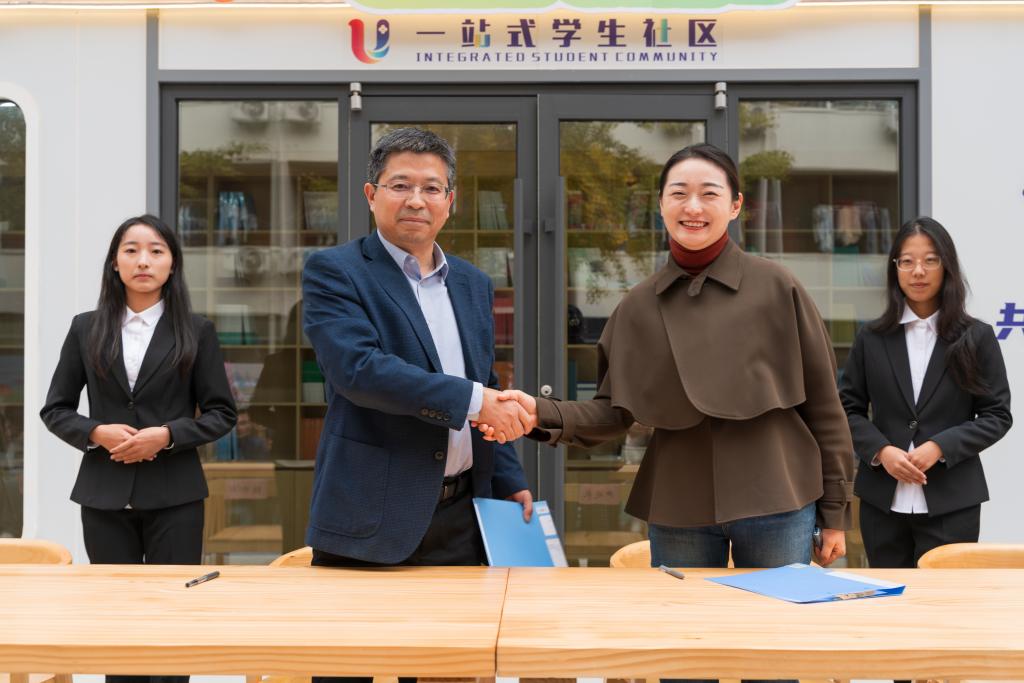 学生工作部副部长朱景星与二级学院代表签订U+空间认领协议,相关学院将充分利用对所认领的U+空间资源开展丰富社区育人活动。