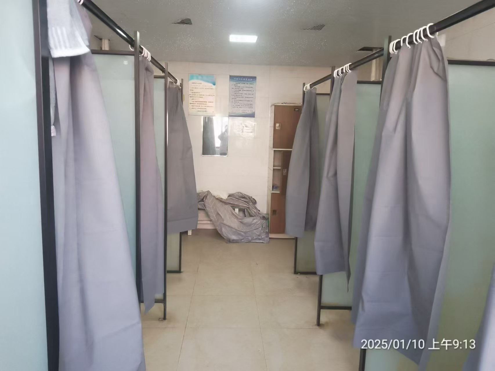 工人更换浴室吊顶          直饮水检测抽样           洗衣机消杀