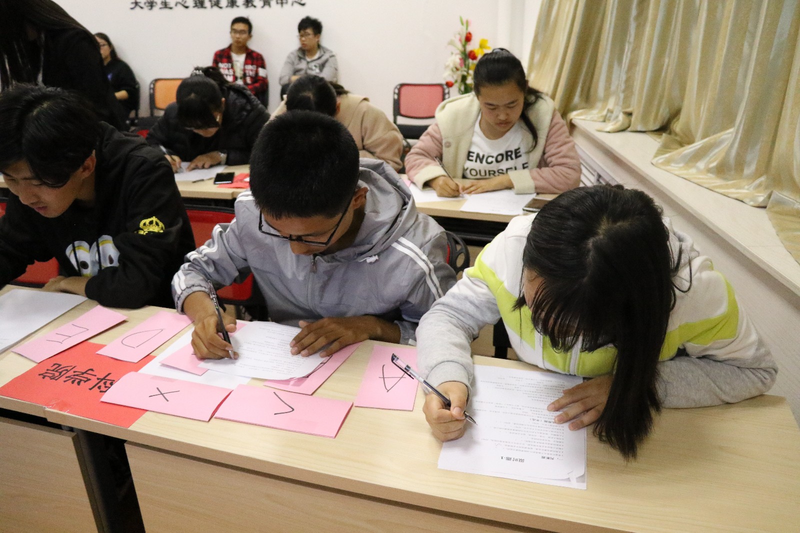 为普及心理健康知识,提高我校学生的心理健康水平,大学生心理健康联合会于五月上旬举办第十二届心理知识竞赛初赛。本次竞赛由校心健联咨询部承办,以“万物心语,愿闻其详”为主题在2017级各学院代表队中展开激烈的角逐。