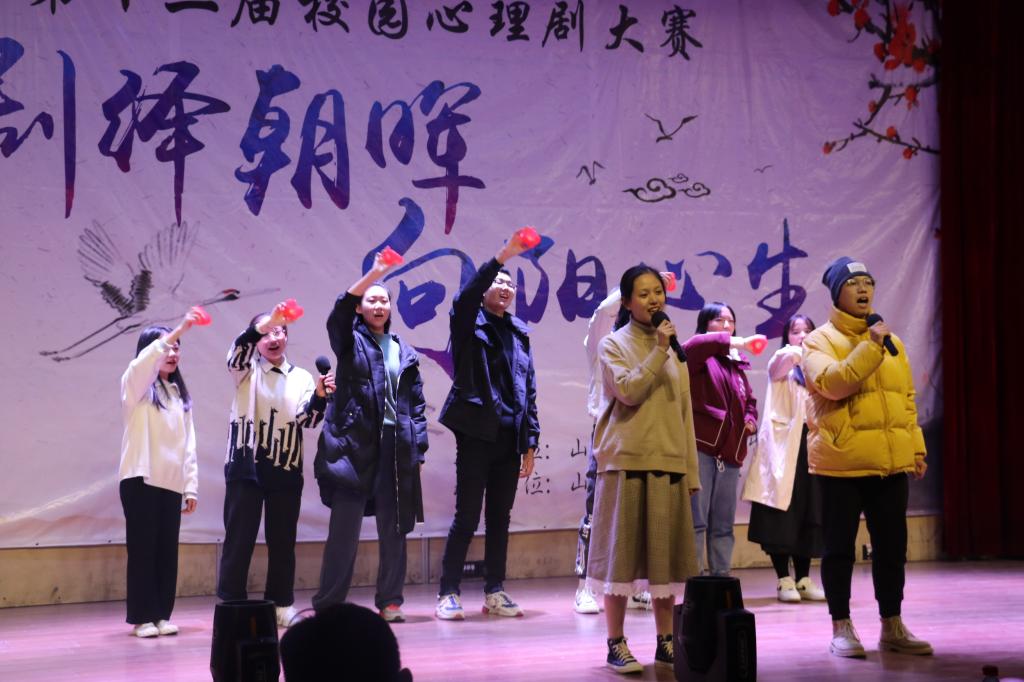 为了让更多大学生了解日常生活中的一些心理问题,并且学会运用一定的心理健康知识解决实际问题,由大学生心理健康教育中心主办、大学生心理健康联合会承办、各学院心理健康联合会协办的主题为“剧绎朝晖,向阳心生”的心理剧大赛于11月29日在大学生活动中心二楼报告厅成功举办。