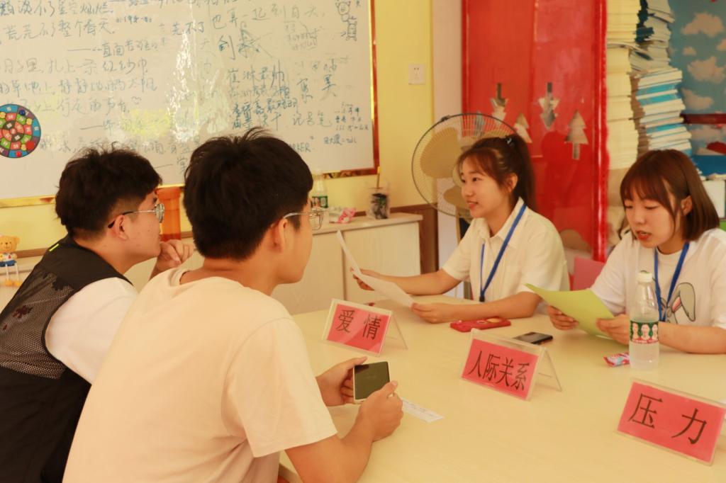 为广泛宣传、普及大学生心理健康知识,让学生们了解到心理健康对自身学习、交友、生活的重要作用,2021年9月11日,校心建联在GA13、GA14心理活动室举办了以“一念解心愁”为主题的户外心理测评活动。