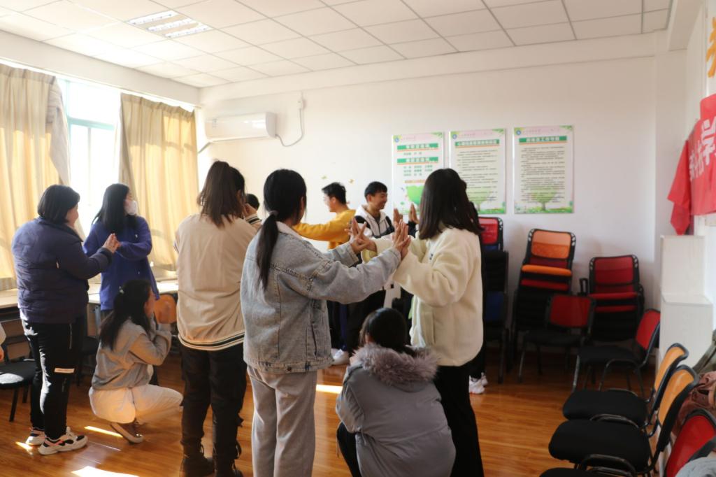 本周训练营由张家萌和路冬燕担任主持,由李丽华、李羽桐、黄克峰、尹紫雯、袁舞霜、陆麒羽担任助手。本次活动主要设置了解锁游戏、猜心俱乐部、松鼠与大树、泡泡糖、知识拓展等环节。解锁游戏和交心俱乐部让同学们打破了隔阂,逐渐建立起了团体意识,帮助同学们初步了解他人;松鼠与大树游戏让同学们放松身心,同时也活跃了气氛,通过一定的身体接触达到了互相亲近的效果;泡泡糖游戏中成员两两一组互相接触主持人所说的部位,通过合作让成员更好地认识彼此,增强关系。