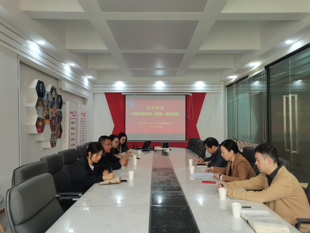 4月18日上午,中国石油大学(华东)学生心理健康教育中心主任韩旭东等一行4人来校调研交流大学生心理健康教育工作,学生工作部(处)副部(处)长靳凯、大学生心理健康教育中心主任李淑娜接待了客人。