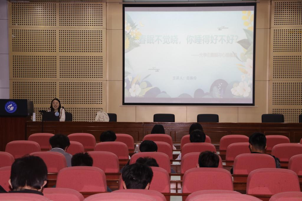 本期活动以“春眠不觉晓,你睡得好不好?”为主题,由大学生心理健康教育中心岳姝伶担任主讲,探讨了大学生睡眠状况以及睡眠与心理健康的关系。活动在青岛校区J4-101设置主会场,同步进行了网络直播。岳姝伶以《中国国民心理健康发展报告》中对大学生睡眠状况的调查为切入点,讲解了睡眠状况与心理健康的重要关系,还介绍了提升睡眠质量的有效方法。生动实用的讲座内容引发了线上线下的积极互动,来自安全学院的于雯耀同学在学习后表示:“原来睡眠质量与心理压力是有密切关系的,我会积极尝试用岳老师讲授的方法提高睡眠质量。”