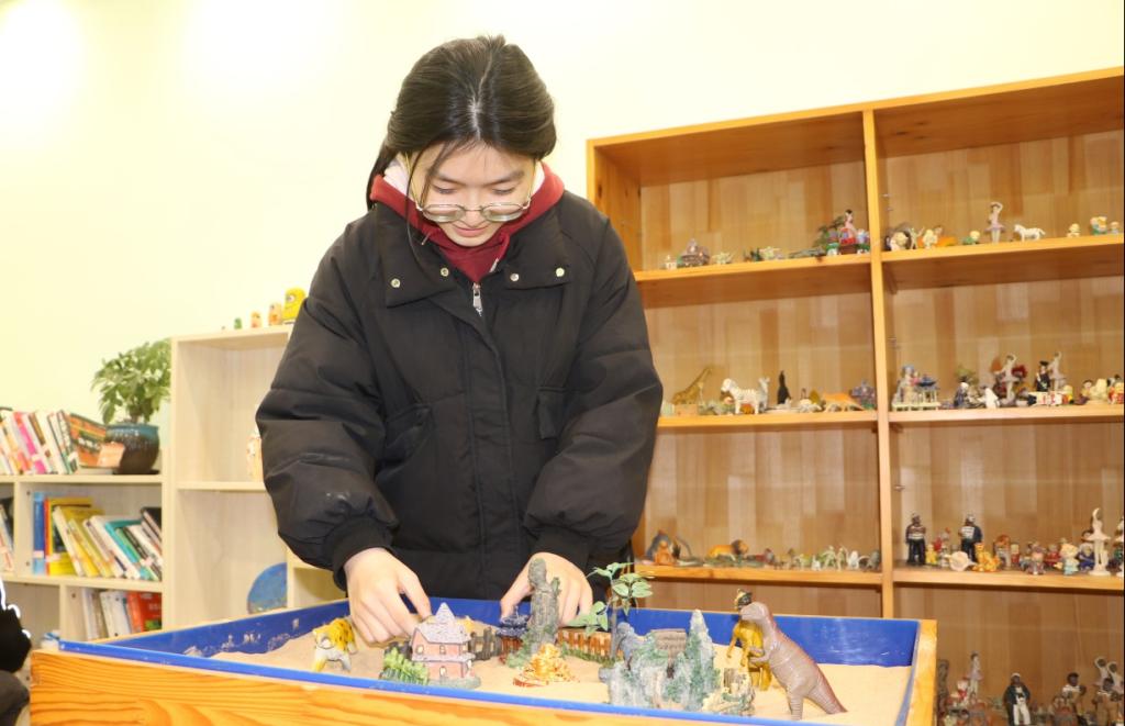 该活动以“你好!我们的心灵驿站”为主题,将心理知识普及与心理设备体验进行了有机融合,同学们在活动中体验了心理自助系统、VR心理放松系统、智能击打宣泄仪、心理沙盘等心理辅导设备,还在工作人员的指导下体验了沙盘游戏、感统能力测验等互动环节。