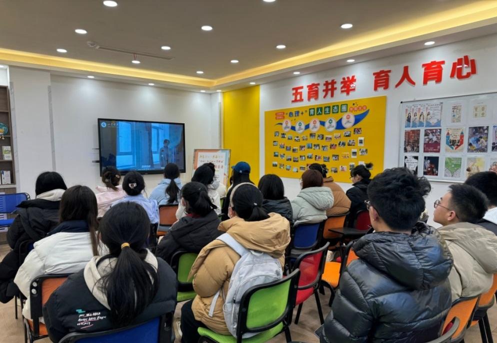 同学们认真观看心理健康宣传片
