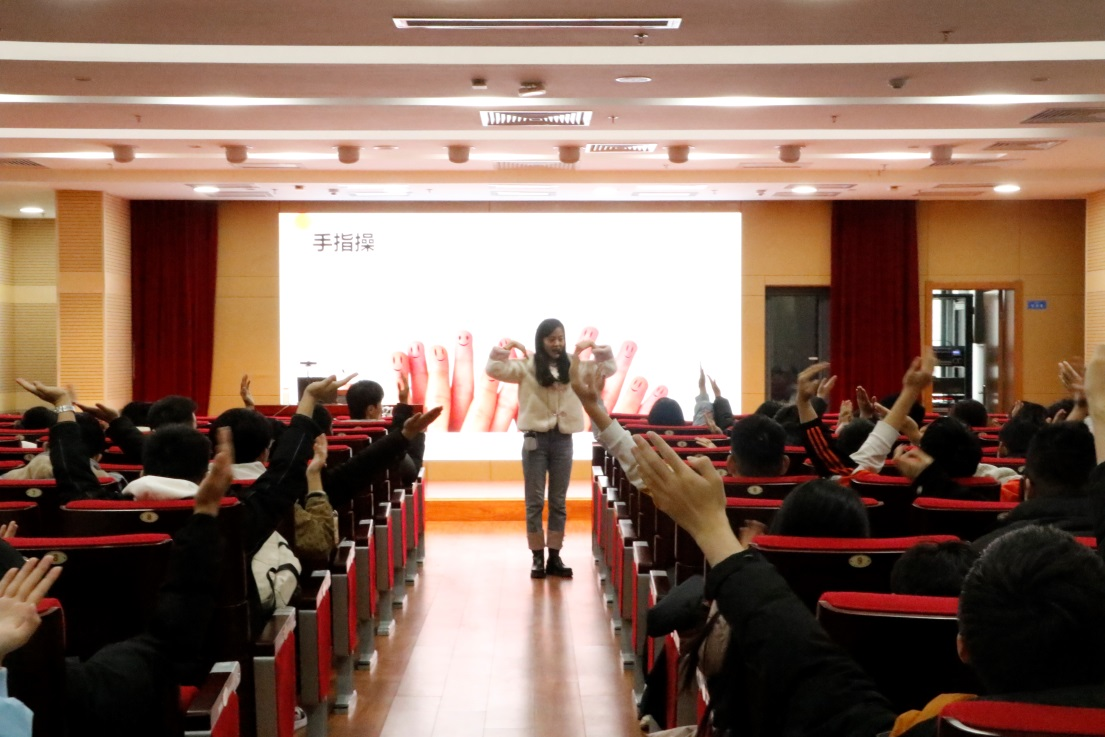 大学生在现场体验心理调节“手指操”