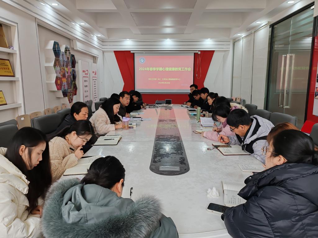 会上,大学生心理健康教育中心主任李淑娜从开学初心理危机排查、心理开学第一课、专家入校服务、心理辅导设备体验等近期工作作出部署安排。她表示,心理工作无小事,新的一年,希望各学院继续严守生命安全底线,凝心聚力,集思广益,不断提升心理育人水平,用心守护学生健康成长。