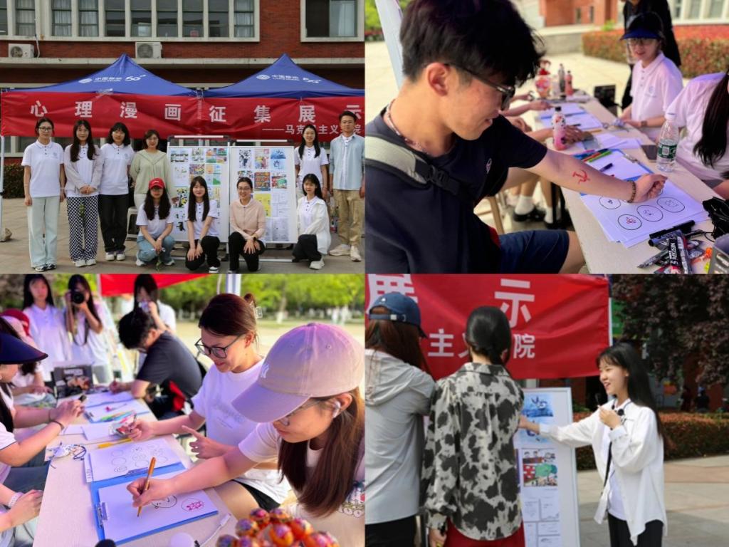 该活动由马克思主义学院承办,以漫画的形式发挥美育润心的心理育人功能,自4月下旬启动以来,得到同学们的热切关注和踊跃投稿,共征集到来自全校15个学院的近100份漫画作品,活动参与400余人。大学生以手绘漫画、多幅漫画、连环漫画等多种形式,描绘成长历程、抒发真实情感,充分展示了良好的心理素质和积极生活的态度。其中优秀作品在校园内进行了集中展出,同学们在欣赏心理漫画的同时,还现场体验了一笔作画和接力作画等互动游戏,充分发挥了艺术的心理表达、情绪疗愈功能。“生活永远有烦恼,但就像漫画化繁为简一样,拥有积极的心态就可以自我疗愈。”马克思主义学院研究生王喆这样表达对心理漫画的喜爱。