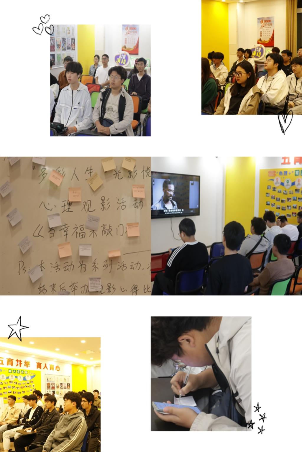 该活动由材料学院承办,以“多彩人生∙光影悦心”为主题开展。活动设置“观影讨论”“心得分享”等环节,精选《妈妈》《城南旧事》等多部佳作,涵盖家庭、励志、社会等多个心理议题,通过精心设计的观影活动为同学们提供心理成长、朋辈交流的平台,同学们在电影中体验人生百态,起到了放松减压和心理疗愈的作用,同时触发了深层次的思考与成长。“观看电影不仅能够引发心灵的共鸣,还能激励我们不断向前。”材料学院2023级学生卢卓成在观看电影《当幸福来敲门》后,被电影中“如果你有梦想的话,就要去捍卫它”这句台词深深触动。