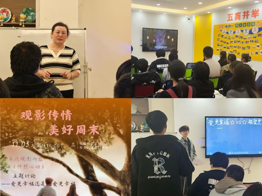 为提高大学生心理健康素养,根据《关于开展“友爱校园∙同心共享”心理健康主题教育月活动的通知》,我校于近日推出“观影传情∙美好周末”系列心理观影活动,首场活动于11月3日下午于心理功能室成功举办。