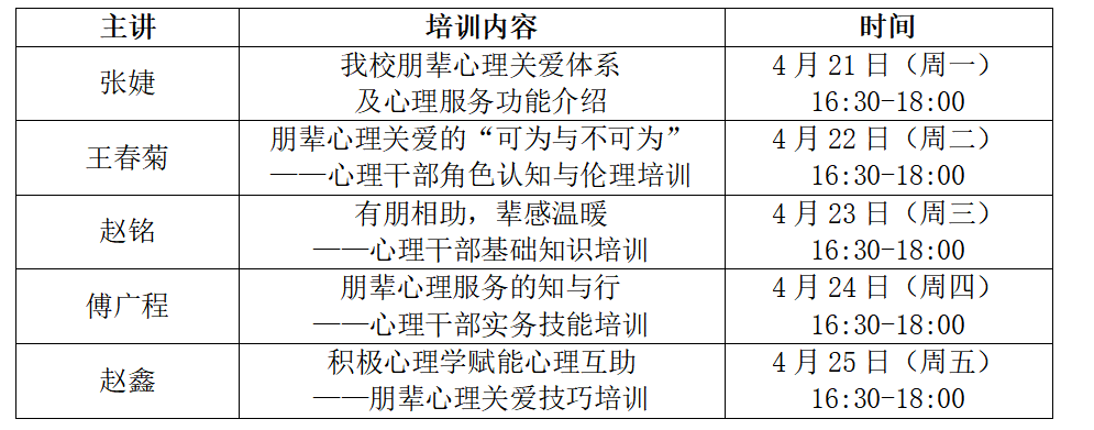 为提高大学生朋辈心理关爱能力,发挥我校心理健康教育“校-院-班-宿舍”四级工作体系的重要作用,决定举办第三十二期“阳光心理讲堂”培训班,现将有关事宜通知如下: