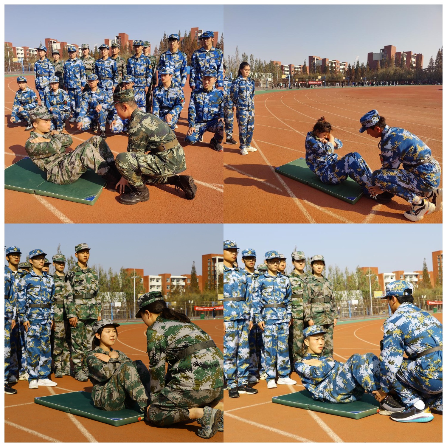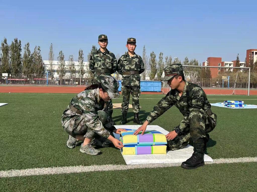 退役复学学生正在对叠军被进行指导和讲解