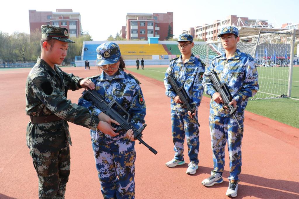 退役复学学生对持枪姿势进行规范校正