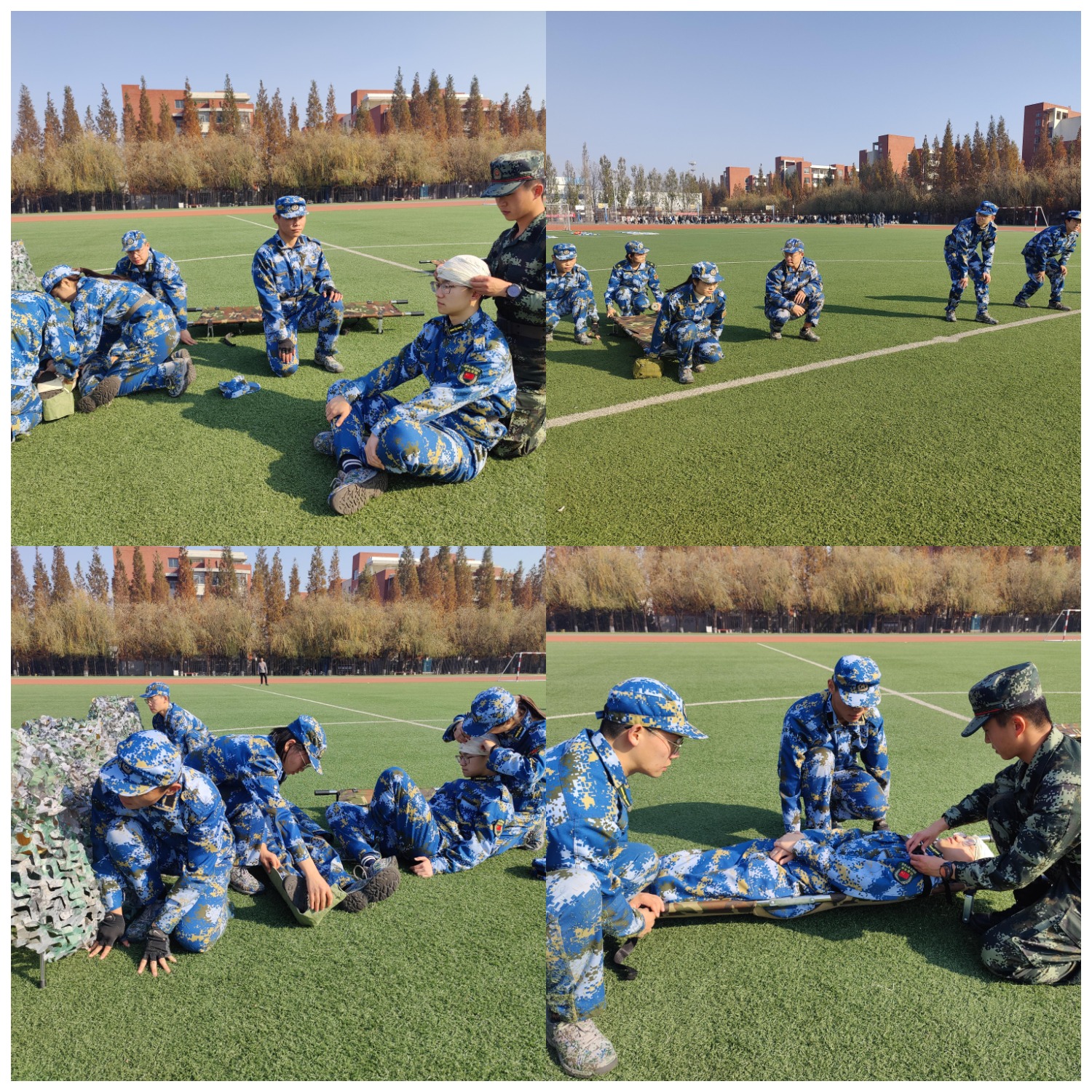 战地自救互救,退役复学学生演示包扎手法