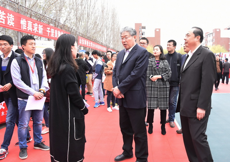 校党委副书记李道刚、副校长刘新民在有关部门负责人的陪同下来到招聘会现场,亲切看望来校招聘人员,并与参加招聘的毕业生进行深入交流。各学院党政主要负责人、学生工作负责人、辅导员及就业导师在招聘会场对毕业生的求职择业进行指导和推荐。