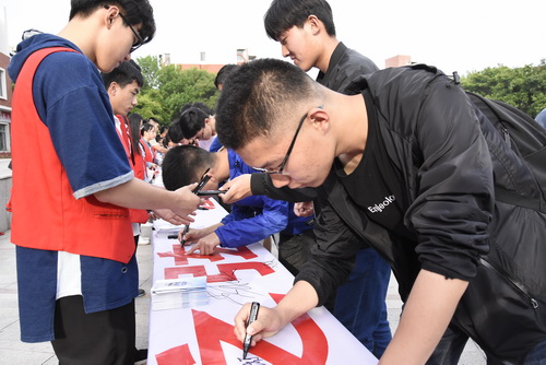 学生代表、大学生自律会主任徐永健发出防范电信网络诈骗的倡议。与会领导、老师和同学在“时刻绷紧防范之弦,谨防新型电信诈骗,共建‘零发案’平安校园”横幅签字,领取《防范电信网络诈骗宣传手册》,并观看防电信网络诈骗宣传展板。