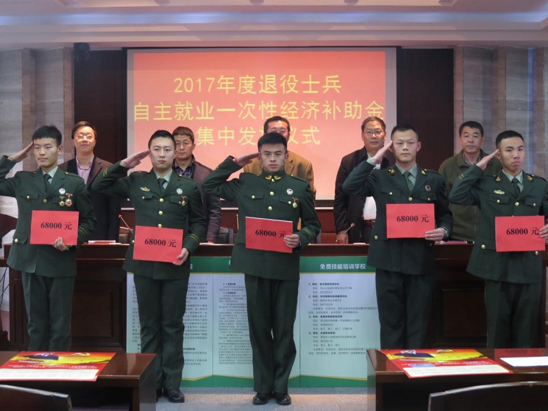 12月18日,黄岛区民政局2017年度大学生退役士兵自主就业一次性经济补助金集中发放仪式在我校进行,我校43名2017年大学生退役士兵、有应征入伍意向的大学生代表参会,黄岛区民政局副局长赵志成、taptap点点体育武装部部长诸葛福民出席会议并讲话。