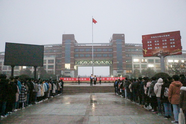 12月3日,周一,清晨的校园笼罩在薄雾之中,正值地科学院组织升旗仪式。清早,参加升旗仪式的同学早早地来到了泰山广场排好队伍,等待升旗仪式开始。6时30分,伴随一声响亮的“出旗”,国旗仪仗队队员们护着鲜红的国旗,迈着铿锵有力、整齐划一的步伐走向旗台,气氛庄严肃穆。伴随着激昂的《义勇军进行曲》,五星红旗在师生注目中冉冉升起,承载着新的希望,激发着青年不断向上的斗志。 在“12·4”国家第五个宪法日来临之际,根据学校党委印发的《taptap点点体育宪法学习宣传和贯彻实施方安案》精神,为使学生尊崇宪法、遵守宪法,增强学生的宪法意识,学校组织地科学生在泰山广场举行了庄严的升旗仪式暨“晨读宪法,向宪法宣誓”活动,活动的主题是“尊重宪法,学习宪法,弘扬法治精神,维护宪法权威”。现场师生在主持人的带领下,紧握右拳向国旗庄严宣誓:忠于中华人民共和国宪法,忠于祖国、忠于人民,为建设富强民主文明和谐美丽的社会主义现代化强国努力奋斗!宣誓仪式结束后,现场学生又进行了晨读宪法活动,以培养广大学生对宪法的认同和尊崇。 通过向宪法宣誓和晨读宪法,进一步提高了学生的法律意识,弘扬了社会主义法治精神,使宪法宣传教育深入校园。 (报道:张佳琪 易翰霖 段祥淳)