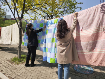 其中,晾晒被褥和宿舍通风是学生的首要需求,共超8000条,为此学生公寓管理服务中心专门成立通风小组,为学生宿舍开窗通风。另采购了标签布条、晾绳等物资,在阳光明媚的日子,宿管阿姨一一做好标记,将棉被一床一床地搬到楼下繁星广场,接受阳光的洗礼。晾晒被褥可不是件轻快活,宿管赵阿姨说:跑上跑下一天都数不清多少趟了,腿又疼又胀,但一想到孩子们回来后能盖上暖和和的被子,闻到阳光的味道,虽然辛苦点,我这心里是幸福和甜蜜的。