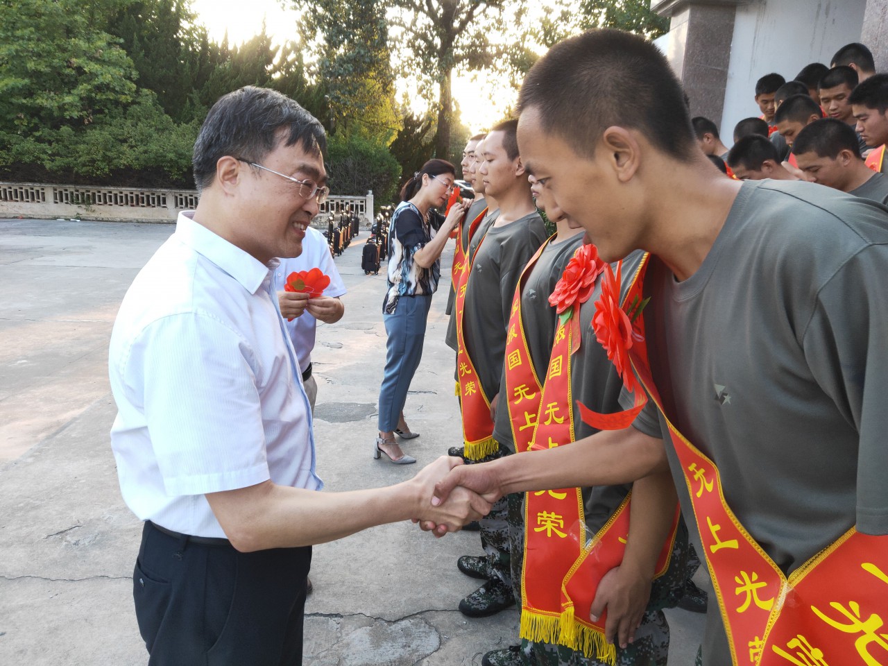 高建广握手相送入伍学生