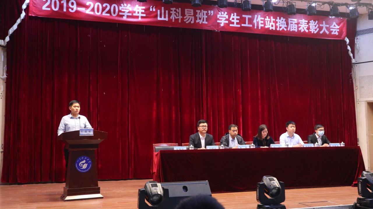 会上对2019-2020学年“山科易班”优秀学生工作站、优秀学生班级、优秀指导教师进行表彰。第三届山科易班工作站站长化工学院杨建帅同学对过去一年“山科易班”学生工作站工作进行了总结,第四届山科易班工作站站长电信学院田新亮同学代表新一届成员发言。