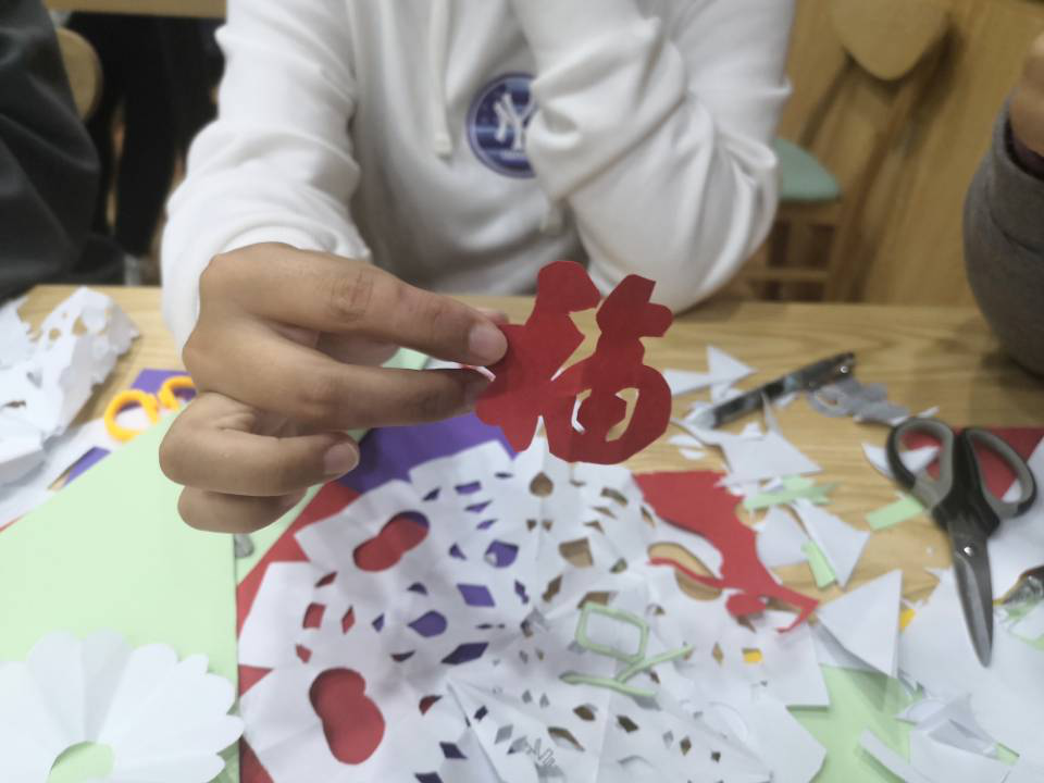 大学生在心理成长“减压计划”活动中学习传统剪纸艺术