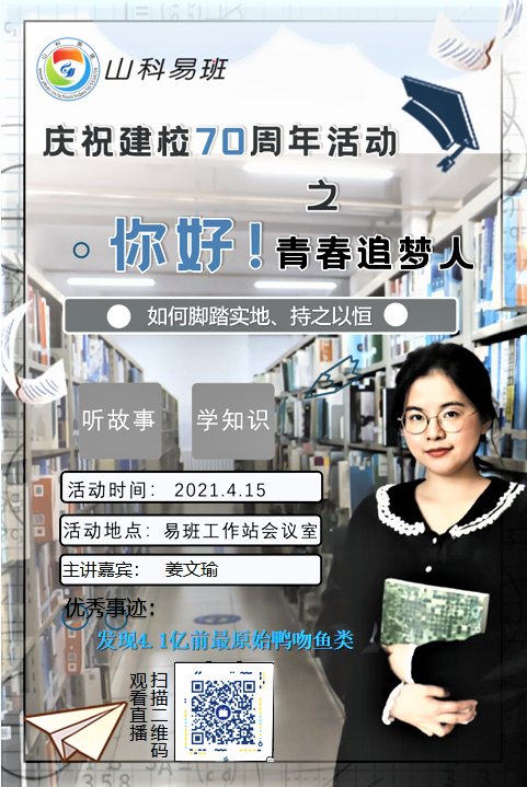 为喜迎建校70周年,充分发挥榜样示范带动作用,激发青年大学生的学习动力和专业志趣,树立成才导向,营造善学、勤学、乐学的良好学习氛围,山科易班举办了“你好!青春追梦人之学长学姐说”优秀学生直播分享活动。