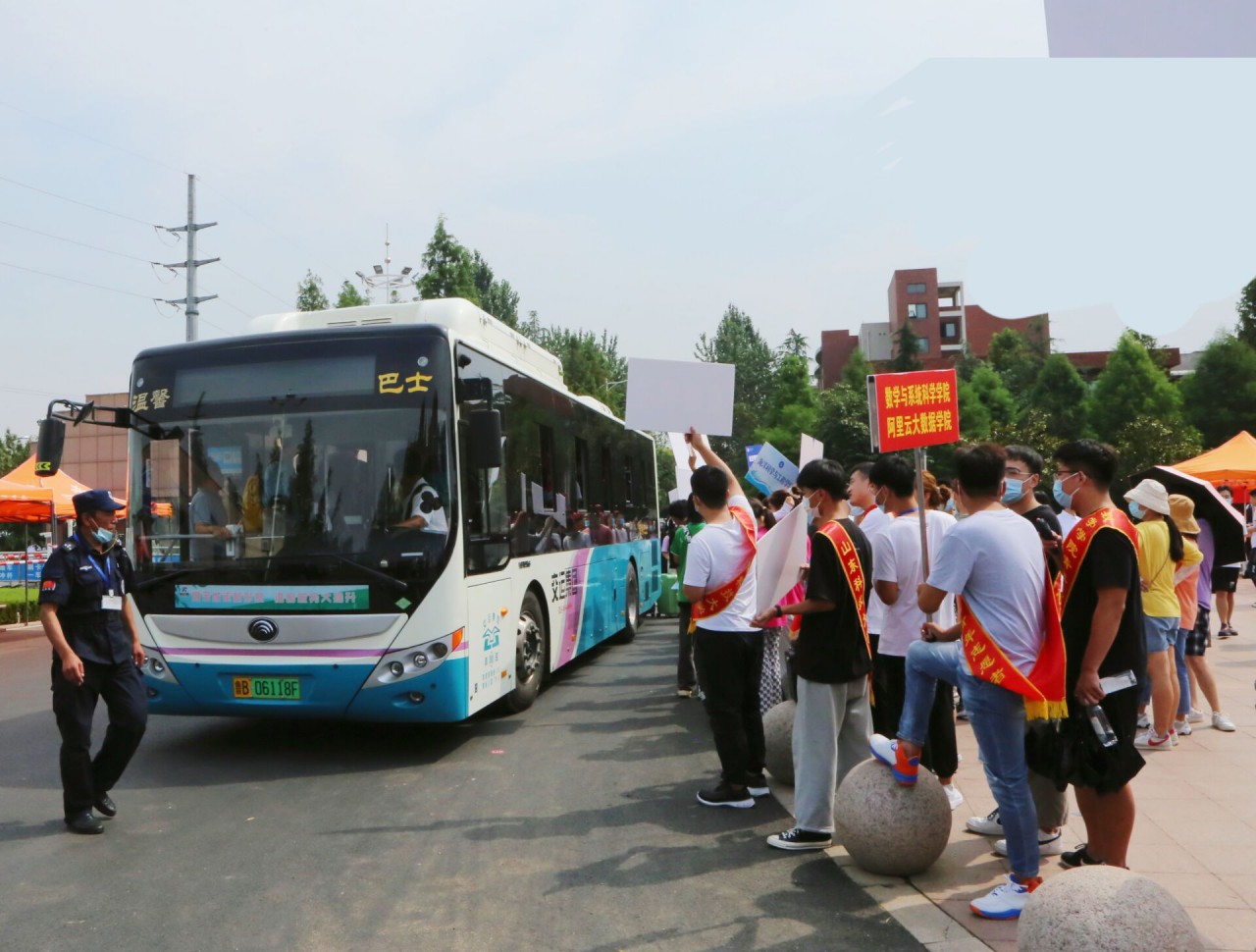 因疫情防控要求,家长等陪同人员不能进校,学校制定了完善的迎新工作方案、组建了迎新志愿者队伍、安排了校内摆渡车等,确保迎新工作顺利、安全、有序进行,以辛苦赢得新生的舒心和家长的放心。