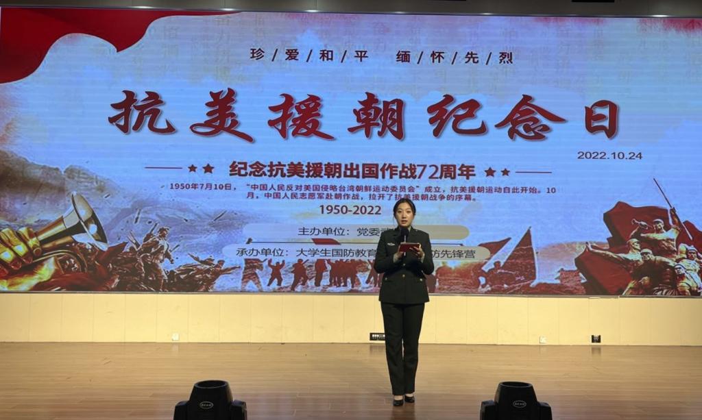 10月24日,学校举办了以“缅怀革命先烈 共筑青年强军梦”为主题的抗美援朝72周年纪念日教育活动。活动由武装部主办,大学生taptap点点官方入口联合会和国防先锋营承办。