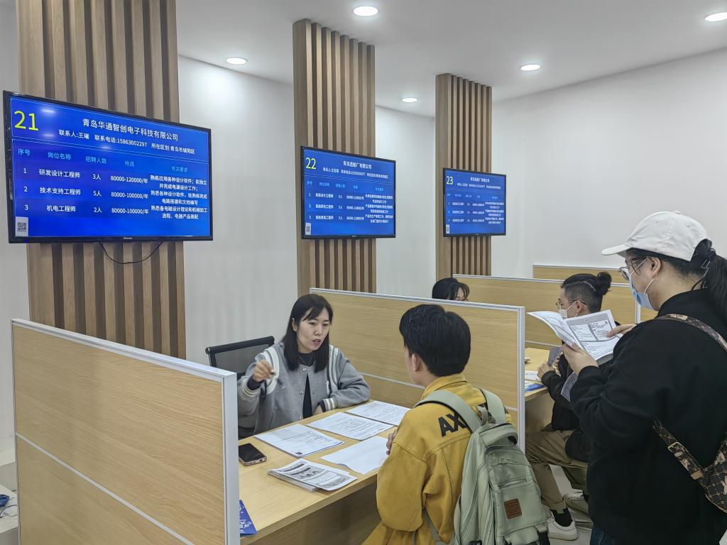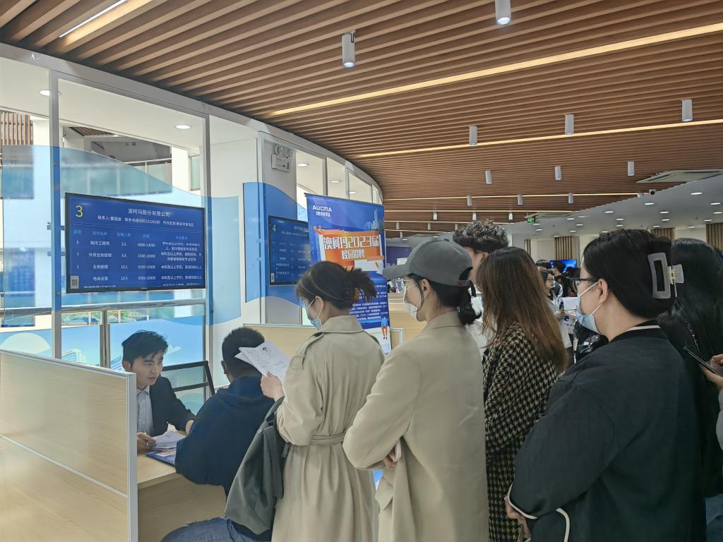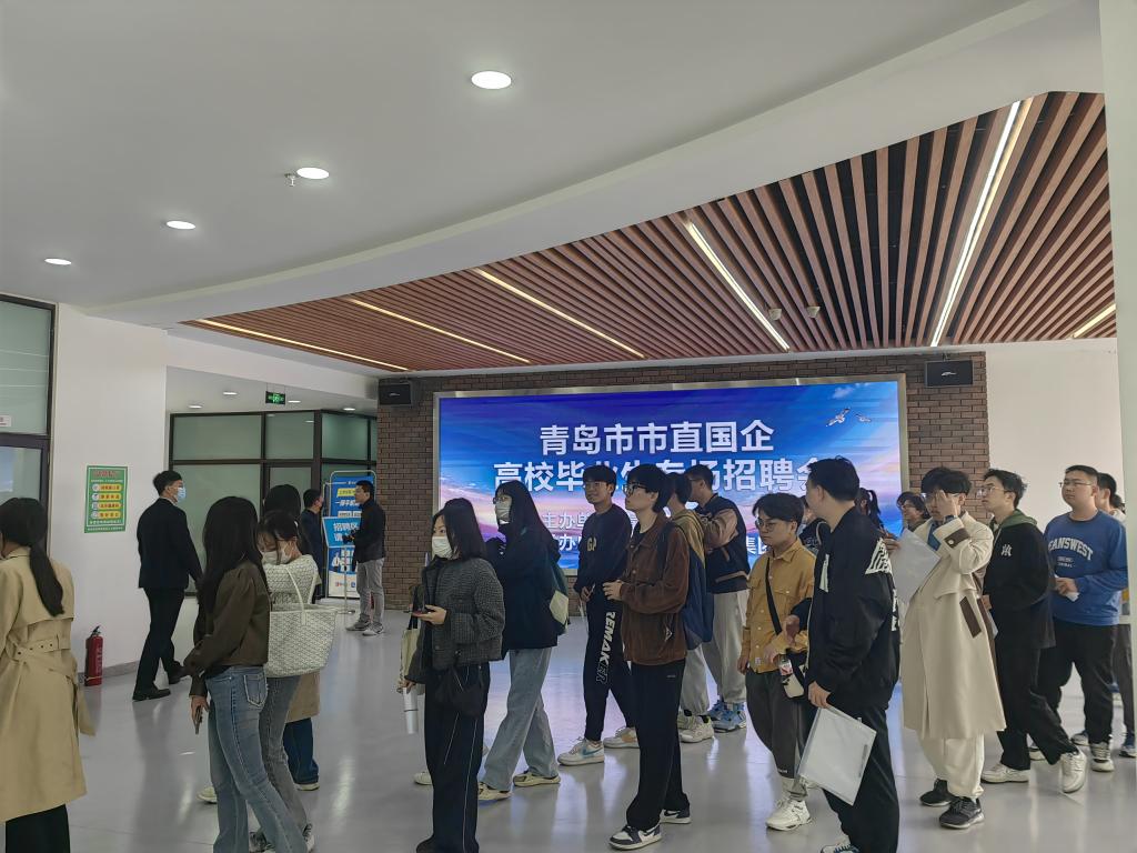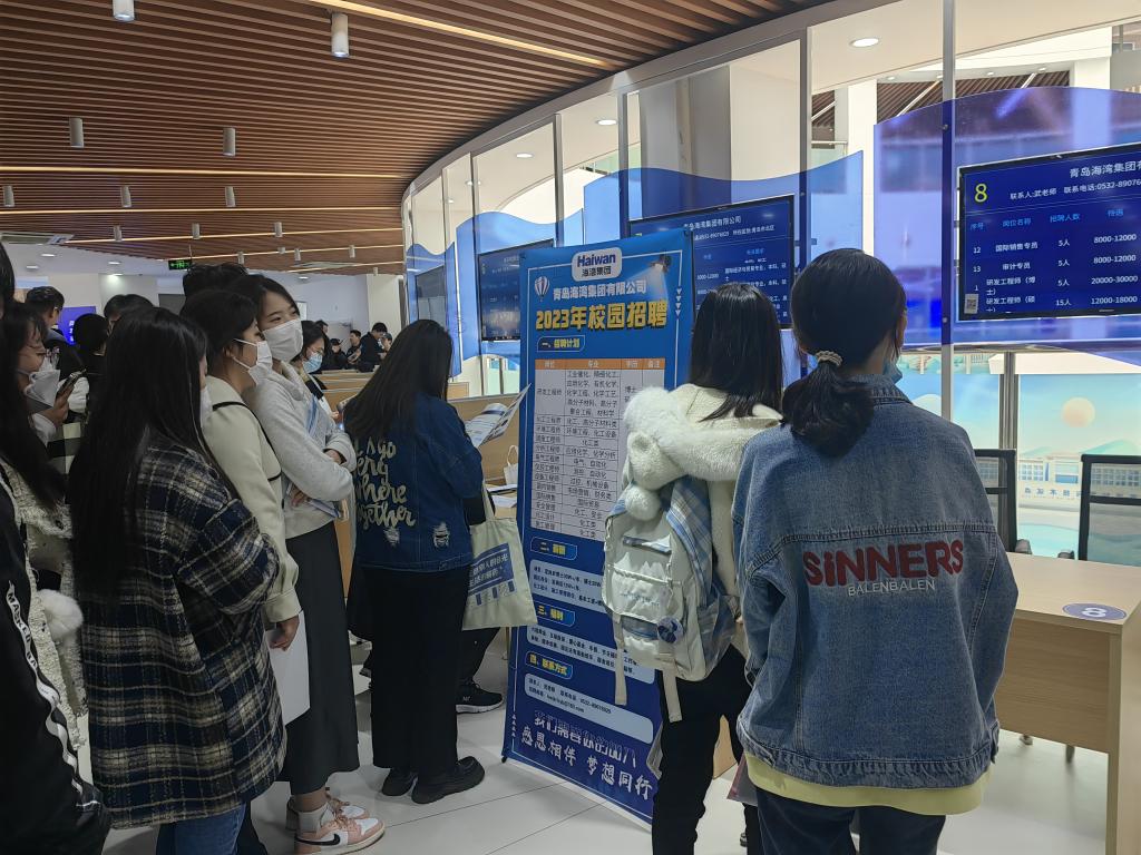 本次招聘会共计27家单位参加,招聘专业涵盖机械制造、海洋环境、化工材料、计算机、金融财会,提供就业岗位700余个。现场人才济济,各个展位前都有毕业生排起长队与HR交流。在积极求职之余,同学们还参观了“人才会客厅”,聆听工作人员关于青岛市人才政策的解读。来自经管学院的徐雅静说:“乘坐学校提供的直通车,我们早早就到了现场。今天的招聘会气氛火热,不断有人在排队进场,让我们感到求职已经到了白热化的阶段,更要抓住机会,主动出击。”