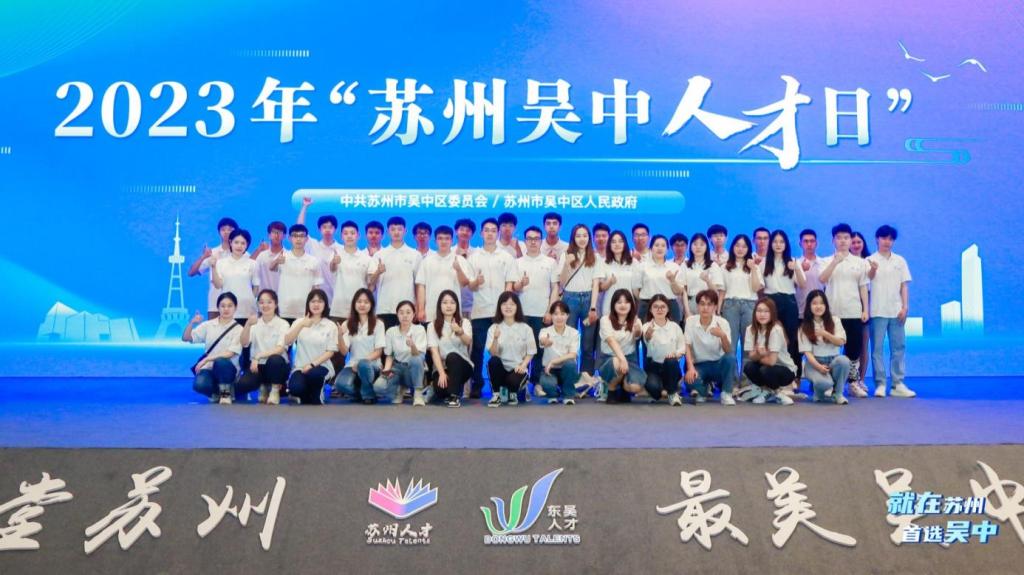 5月20日上午,我校师生代表前往澹台湖大酒店参加2023年“吴中人才日”启动仪式,吴中区委书记丁立新、工业和信息化部人才交流中心副主任曾卫明、人才代表李中天等相继发言,表达了吴中惜才爱才渴才的决心,呼吁各地青年才俊相信苏州,选择吴中,在这片人才的热土上发展壮大。会议先后进行了东吴人才创业加速营开营、科创载体揭牌、人才体验线路发布、东吴人才会客厅授牌等仪式。