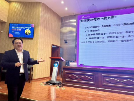 为增进毕业生对公职类考试的了解,帮助同学们科学备考,10月8日,大学生就业指导中心邀请青岛凤皇教育校长王宝玉来校举办职等你来求职训练营——2024全年公职考试备考指导讲座。