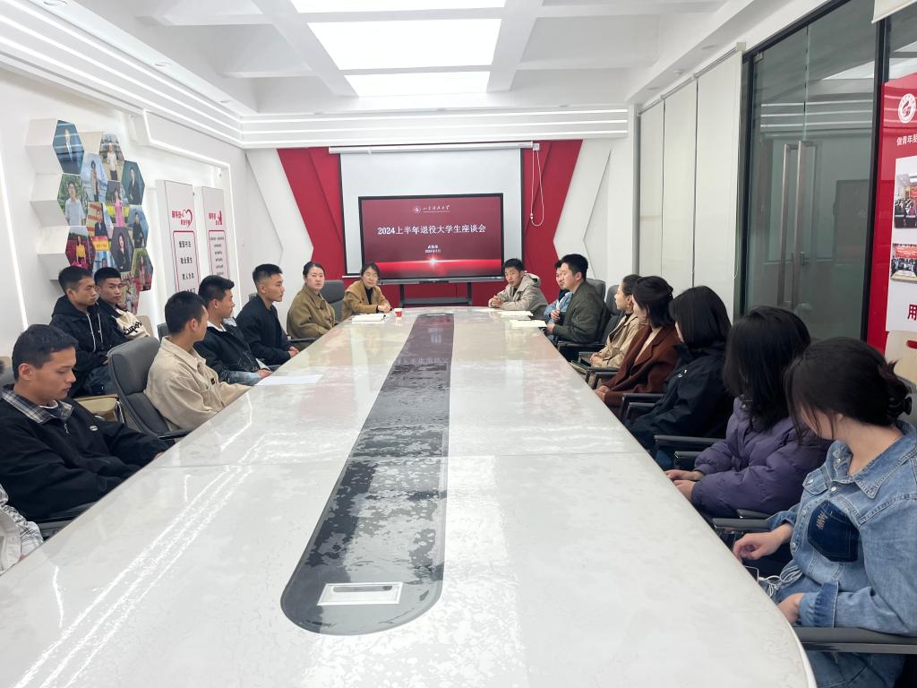 为进一步做好退役复学学生教育管理服务工作,帮助他们尽快适应大学环境,更好地成长成才,3月26日,武装部召开退役大学生座谈会。学生工作部(处)资助管理中心刘伟娟、2024年上半年退役大学生参加了会议。会议由武装部于喆主持。