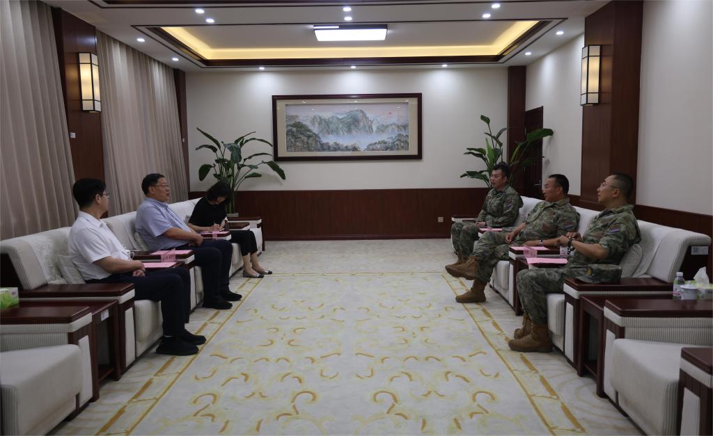 “八一”建军节来临之际,7月19日上午,校党委常委、副校长诸葛福民、武装部部长尹立明、副部长孔环一行3人,到我校学生军训承训部队走访慰问,并带去了慰问品,向部队全体官兵致以亲切的节日问候。大校部队长张志刚、上校副政治委员谢旺、管理科科长陈准接待了诸葛福民一行。