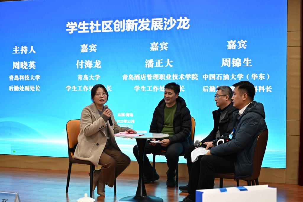 互动沙龙环节由青岛科技大学后勤处副处长周晓英主持,青岛大学付海龙、青岛酒店管理职业技术学院潘正大和中国石油大学周锦生作为对话嘉宾,围绕学生社区创新发展的核心痛点、未来方向展开深度研讨,通过思想碰撞凝聚发展共识,为后续校际合作与创新实践奠定了基础。