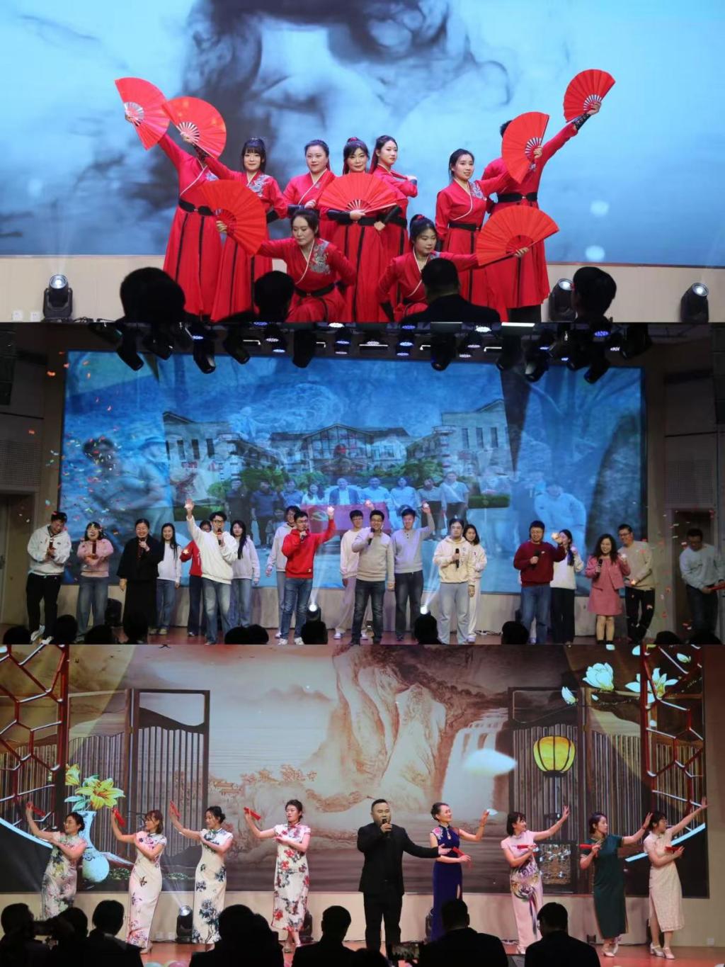第三篇章“同梦•星海璀璨”中,数学学院与文法学院的歌曲串烧《花予人间》,学生处、研究生院、校团委联合出演的舞台剧《辅导员的成长路》,娓娓道来育人路上的坚守与感悟。