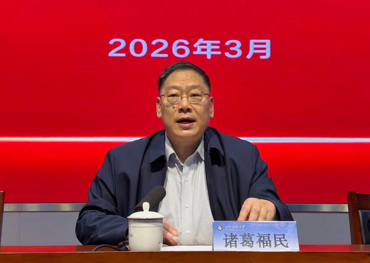 诸葛福民在总结讲话中,充分肯定2025年学工战线取得的成绩和对学校发展做出的贡献。结合当前学生工作面临的形势和存在的挑战,关于做好学生工作,他强调,一要坚持落实立德树人根本任务,以更高站位把准育人方向。深刻领会党的二十届四中全会精神,对标“十五五”规划建议,落实学校第四次党代会战略部署,全面贯彻“11215”学生工作思路,推动学生工作高质量发展。二要坚持聚焦成长成才核心需求,以更实举措服务学生发展。坚持“以学生为中心”,以更加精细化、更具人情味的工作,实实在在解决学生“急难愁盼”的问题,让学生真正实现“快乐学习、健康成长”。三要坚持紧跟时代变革发展大势,以更新理念提升工作质效。善用数字技术赋能,构建“AI技术赋能+人文关怀坚守”的心理监测体系,数智化就业服务体系,“成长档案”数字化记录,不断创新育人模式,让新技术新理念“赋能”学生工作。四要坚持筑牢系统思维底线意识,以更远眼光夯实长远根基。树立“一盘棋”思想,让教书、管理、服务工作有机融合,形成育人合力。同时强化底线思维,始终绷紧意识形态安全、校园安全、心理安全弦,筑牢安全稳定防线。五要坚持强化队伍素质能力建设,以更高标准锻造育人铁军。持续加强辅导员队伍建设,落实“七有三制度”工作要求,全面推行首问负责制、严格执行限时办结制、深化月计划例会和周工作例会制度,做有眼界、有责任、有担当、有情怀、有规矩、有健康、有能力的辅导员。
