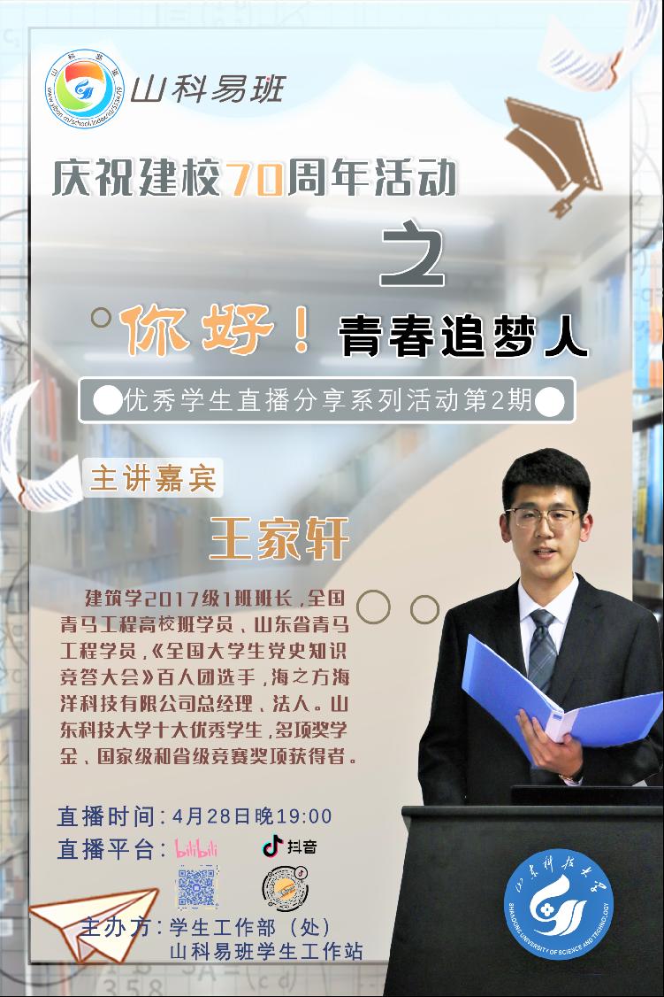 直播预告 |山科易班“庆祝建校七十周年之你好!青春追梦人”优秀学生直播分享活动第2期