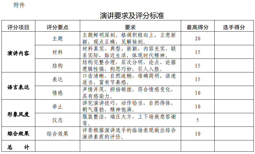 附件:演讲要求及评分标准